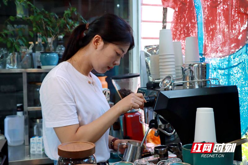 猪栏咖啡主理人蒋玉萍做咖啡。蒋璇 摄