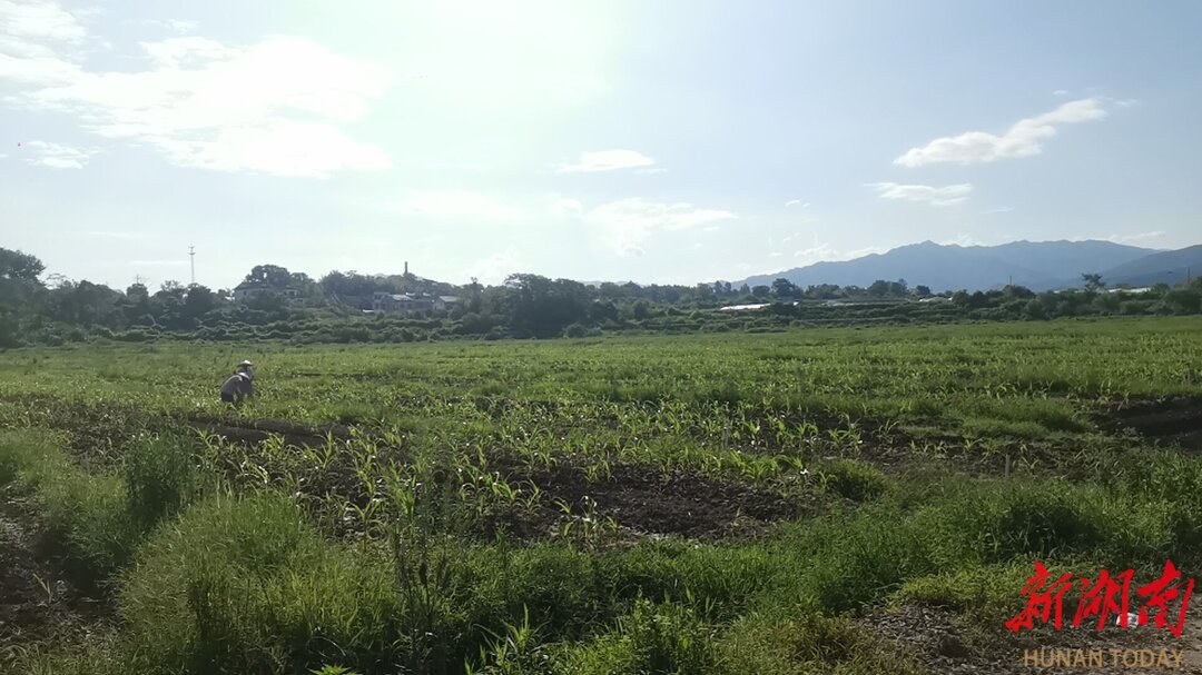 在村子的另一边——画眉山村供港蔬菜基地里,刚刚播种完的玉米种子正在抽穗发芽。乡间的小路上,一位老人家戴着草帽匆匆走过,正赶着去蔬菜基地干活儿。