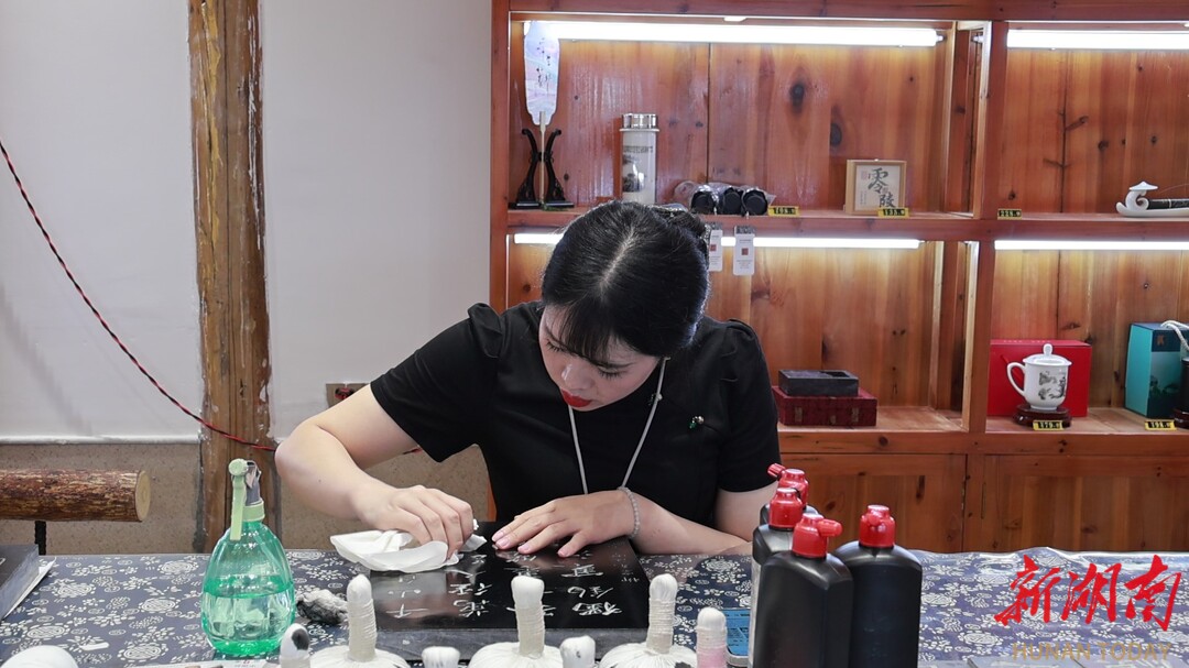 在柳子庙旁,有一家拓印体验馆。屋内设计古色古香,各种拓印工具依次展开,拓印作品摆放错落有致,墨香四溢。