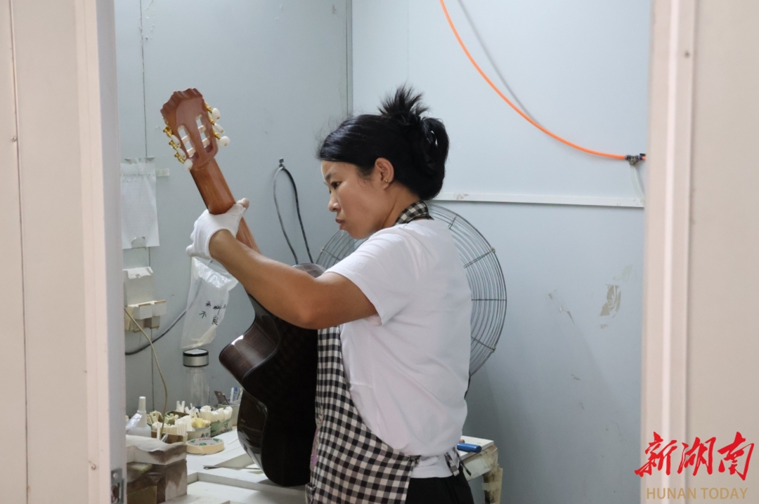 “县里提供厂房,免3年租金。”东安楚门乐器制造有限公司生产部负责人陈发财说,公司成立于2022年,主要生产高端民谣吉他。因为政策给力,公司“规模变大了,年产吉他5万支以上”,产值达五六千万元。