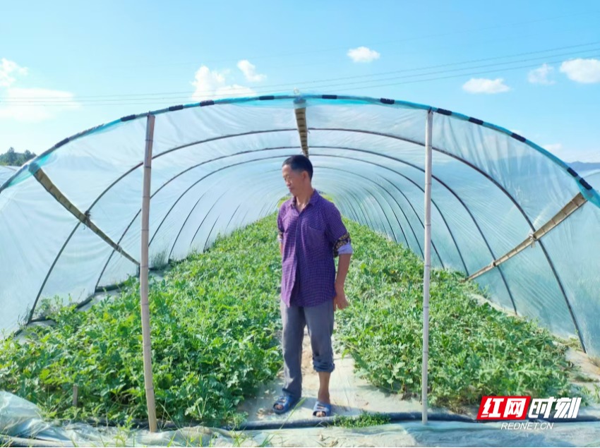 大棚西瓜种植户李宗主是这一模式的先行者,六年前他回到家乡,初期通过观摩学习,逐步掌握大棚西瓜种植技术,在实践中不断摸索与调整,并创新性地采用轮作模式,提升了产量与品质,积极传授经验,带动村民共同致富。“政府对我们搞这个大棚西瓜也是比较支持的,会组织我们去道县、宁远的公司学习病虫害防治等课程,我们就能更好地预防这个虫害。”谈到政策扶持,李宗主感激地说。