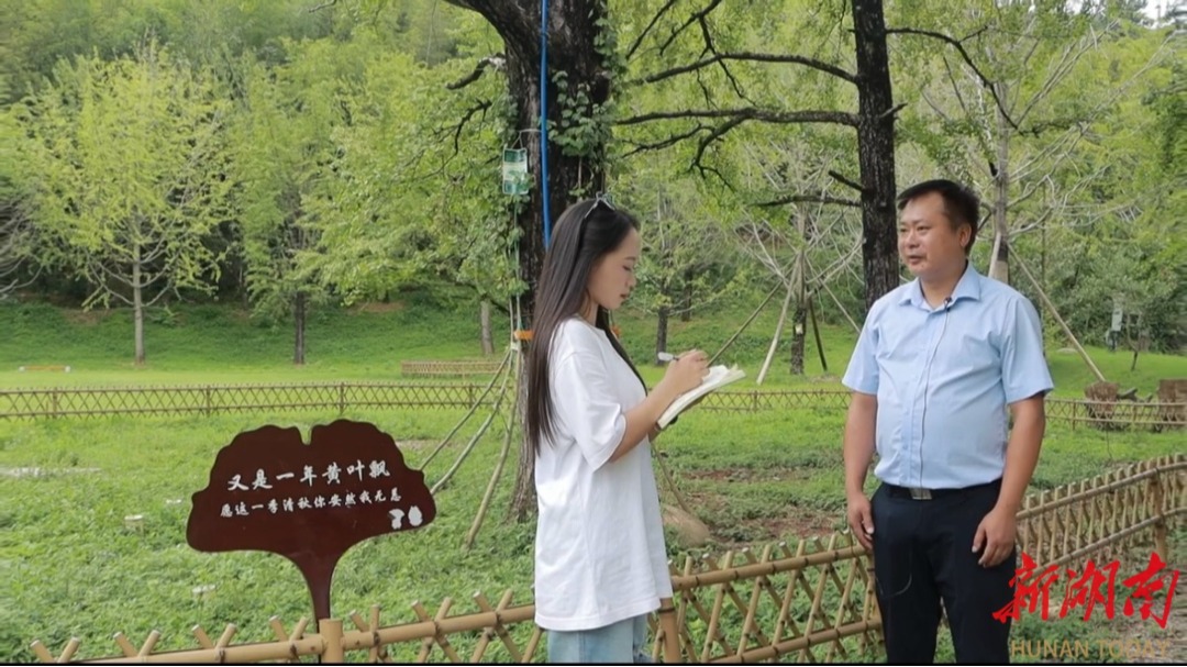 (双牌县茶林镇桐子坳村党支部书记、村委会主任蒋志群在介绍村里的旅游增收情况)