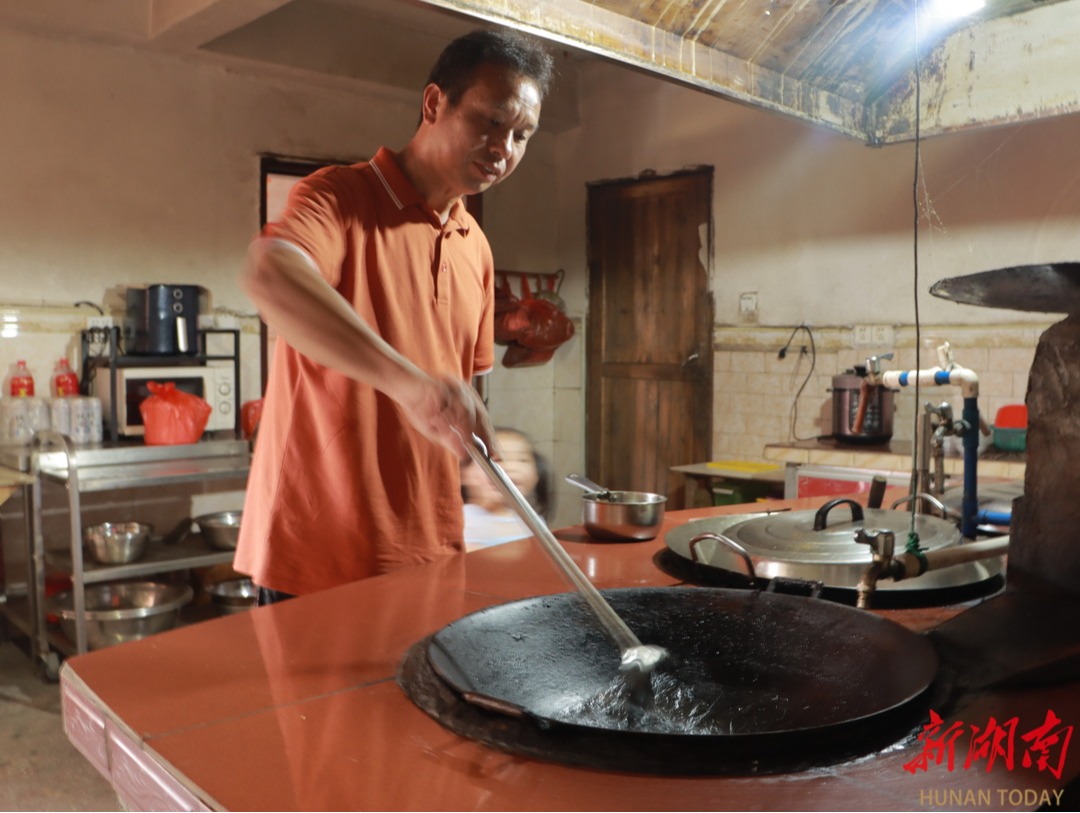 (双牌县茶林镇桐子坳村银杏生态农家的老板蒋利群正在炒菜)