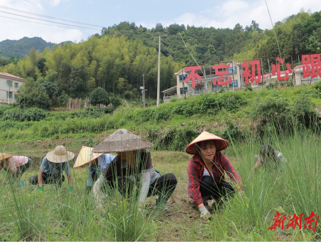 (双牌县茶林镇桐子坳村民廖秋荣和村民在花田除杂草)