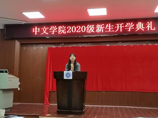 秘书17-2BF班刘芳同学代表老生作了发言,汉语20-3BS班刘琳洋和秘书20-1BF班汪芊芊同学代表新生发言。2020届优秀毕业生代表通过视频分享了自己的学习经验。