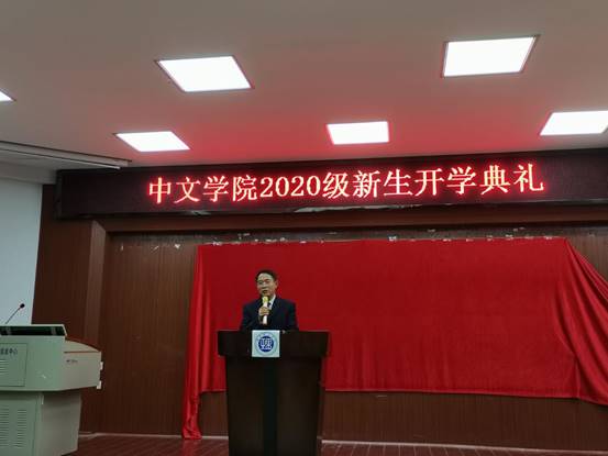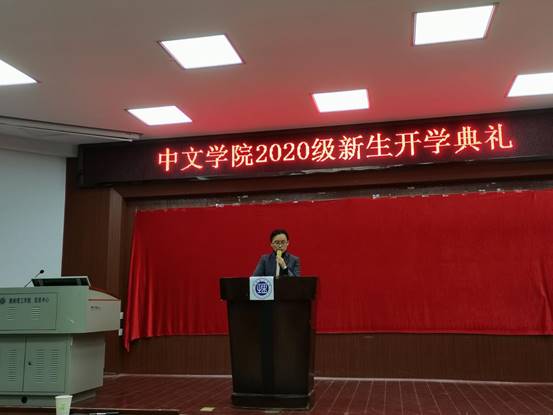 11月3日晚上,中文公司2020级新生开学典礼在南院六号教学楼学术报告厅举行。公司领导班子成员和全体教师出席典礼,2020级全体本科生新生参加。公司党委副书记贺波彬主持。