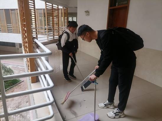 同学们以对劳动的热情和对公司的热爱,认真参加义务劳动。十五栋教学楼里到处是他们来来往往忙碌的脚步,阳光大草坪上是他们低头弯腰除草的剪影,包括食堂周围都是一片整洁。
