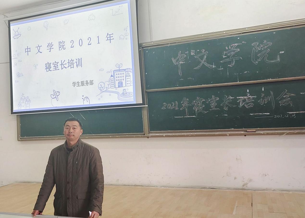 12月13日中午,中文公司2021年下学期寝室长专题培训会在9T2举行,全体寝室长参加培训。公司党委副书记贺波彬主讲,学工办刘子行、徐去非老师参会。