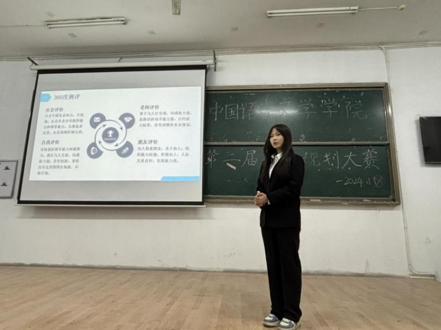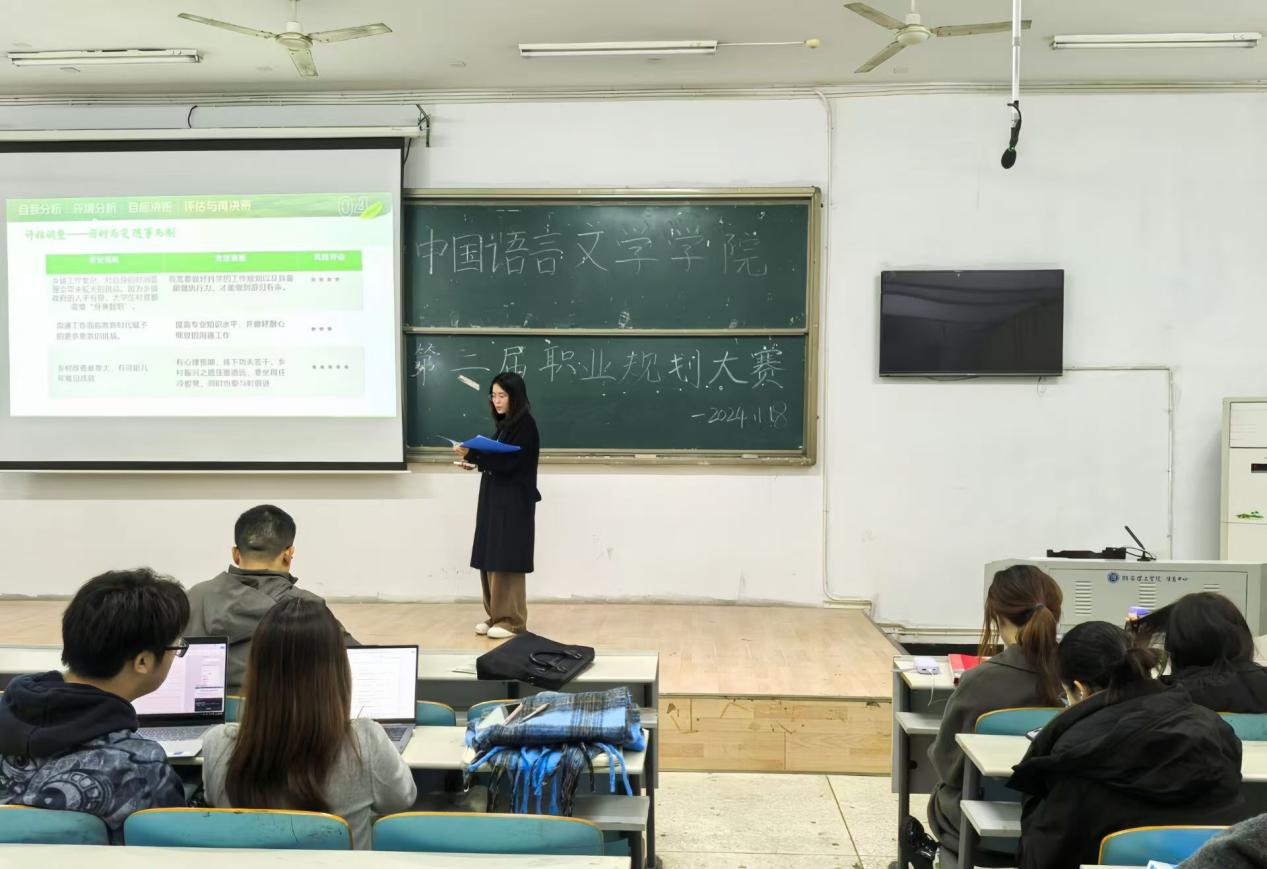 11月18日晚,中文公司第二届老员工职业规划大赛决赛在9T1教室举行。决赛评委由中文公司学工办刘子行、徐去非、孙聚荣老师担任,汉语24-3BS、汉语24-2BS、汉语24-4BF全体同学在现场观摩。