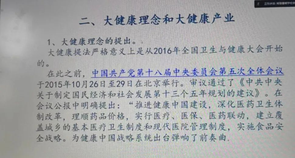 缪嘉军研究员分别介绍了大健康理念与大健康产业的概念与来源,指出大健康将成为中国党和政府的执政特色。他认为大健康的重点是突出健康管理作用,并以疾病图谱发生改变,健康管理成为大健康的核心内容作具体分析,他表示提到大健康就要想到健康管理,而健康管理的关键是教育与传播,因此提倡应该加强健康的科普教育。缪嘉军研究员认为大健康产业是跨学科、跨领域、多种技术的融合的产业,是可持续性促进健康而不损害人类健康的产业。