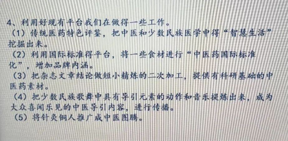 (1) 传统医药特色评鉴,把中医和少数民族医学中得"智慧生活"挖掘出来。