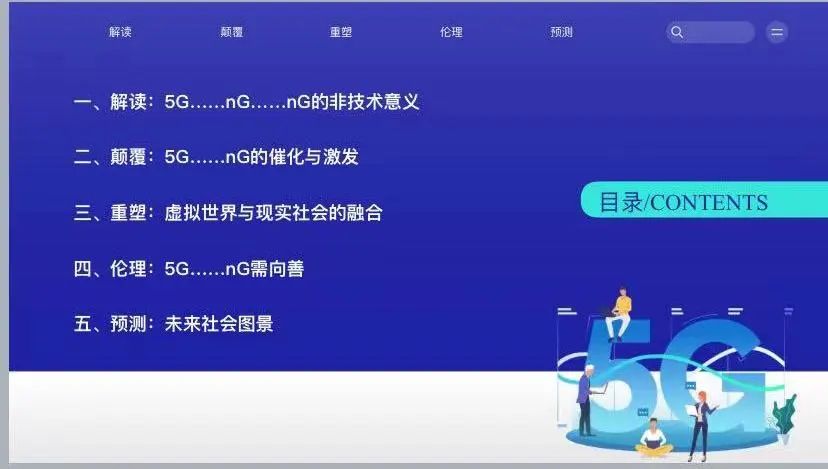 首次,在人与社会的关系方面,在人类社会的发展进程中,人们与社会之间的联系一直是处于点或线的状态。而在5G……nG背景下,人们与社会之间的连接呈现一种全程、全息、全员和全效的特征。