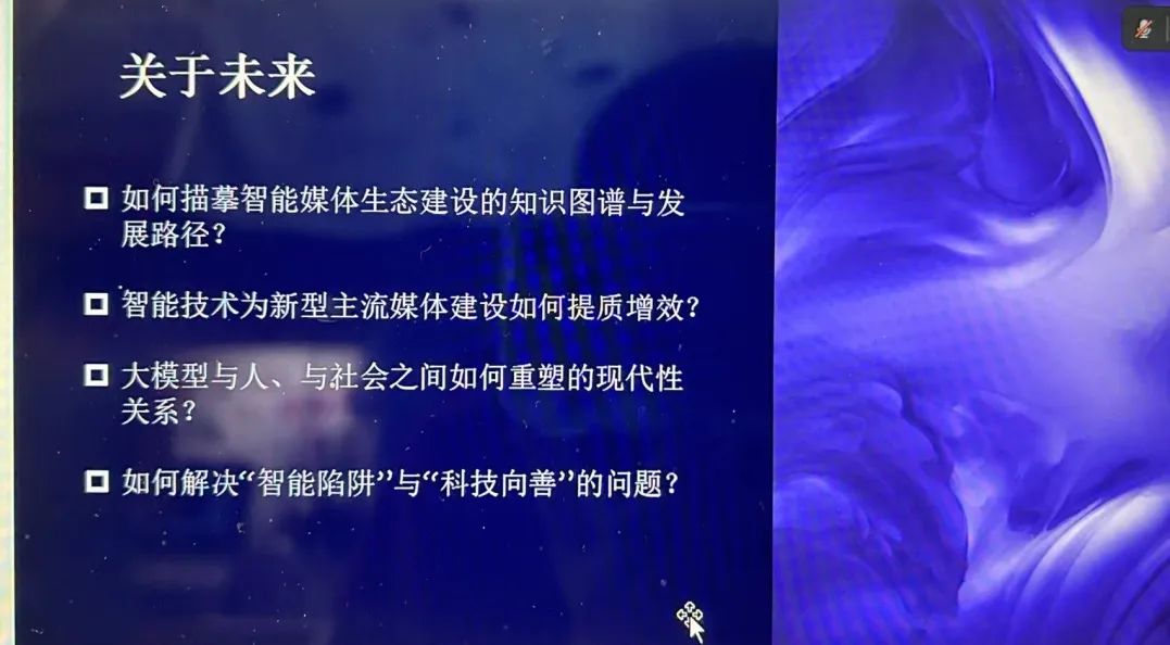 最后漆亚林教授就智能媒体发展的未来提出了四个问题,希望同学们在未来的研究中不断思考。