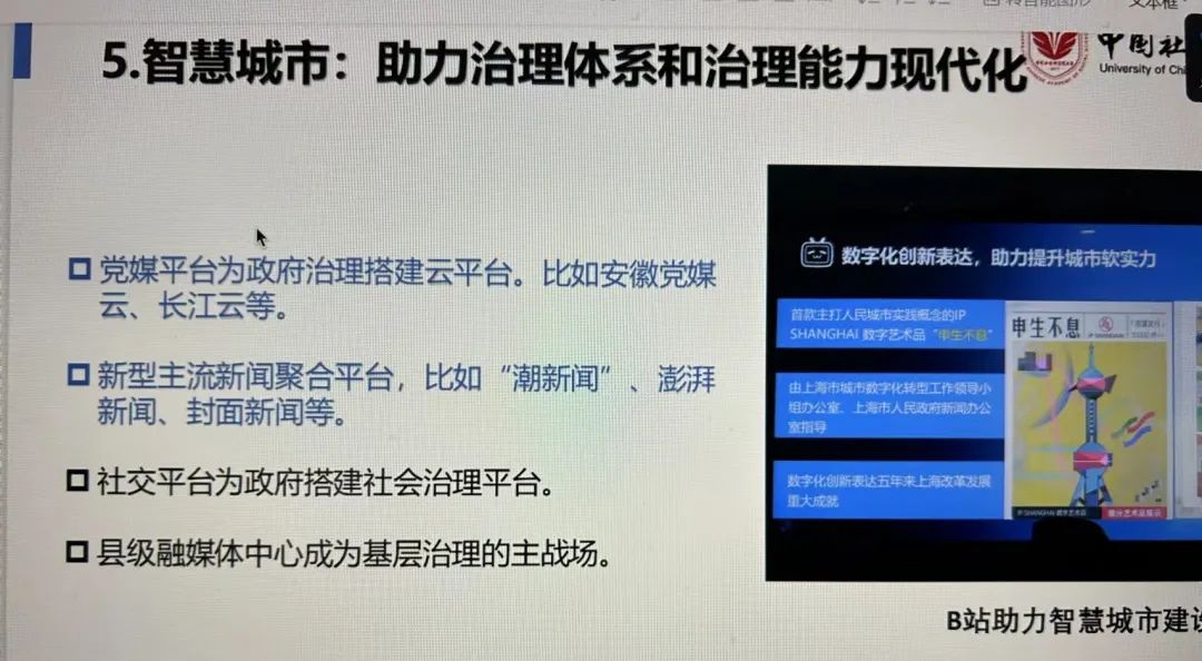 (5)智慧城市:助力治理体系和治理能力现代化。主流媒体不能忘记最大的一块阵地在基层社会,智能媒体在智慧城市的建设,也需要助力县级融媒体进行基层治理,从而提高国家治理能力。