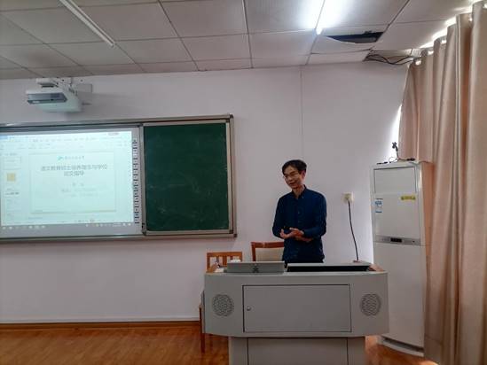10月23日下午,中文公司在9314举办“南湖讲坛”教育硕士导师培训讲座之“语文教育硕士培养理念与学位论文指导讲座”,讲座由湖南科技大学李学教授主讲。经理曾炜,副经理张勇、封传兵出席,部分专任教师和研究生参加。