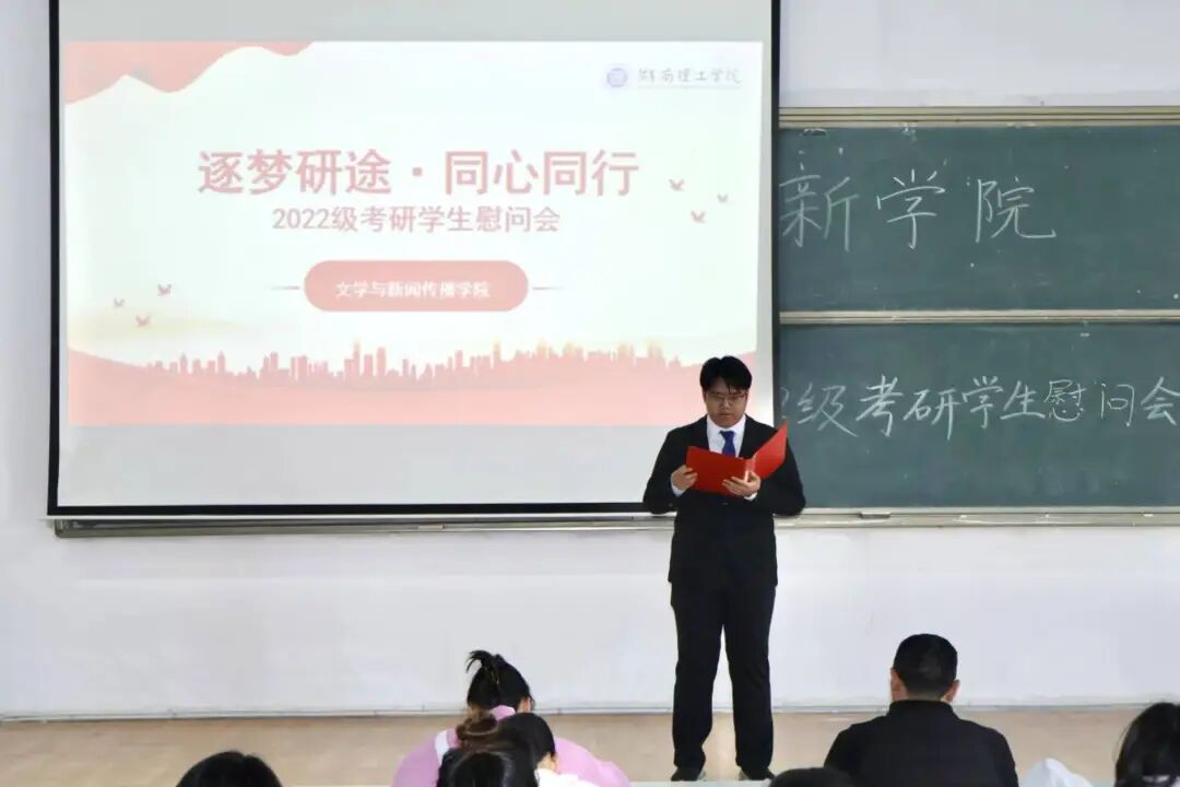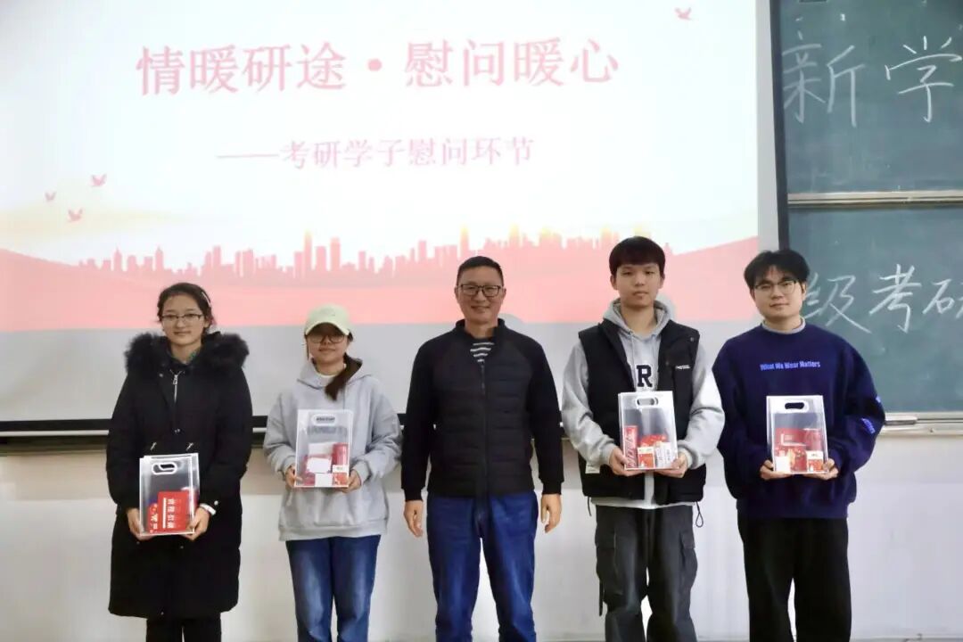 校园网讯 12月11日上午,beats365在7T2教室召开2022级考研员工慰问会,为即将奔赴考场的学子送上关怀与祝福。副经理肖涛、2022级辅导员王勤、班主任侯雨薇老师出席,2022级考研员工参加。