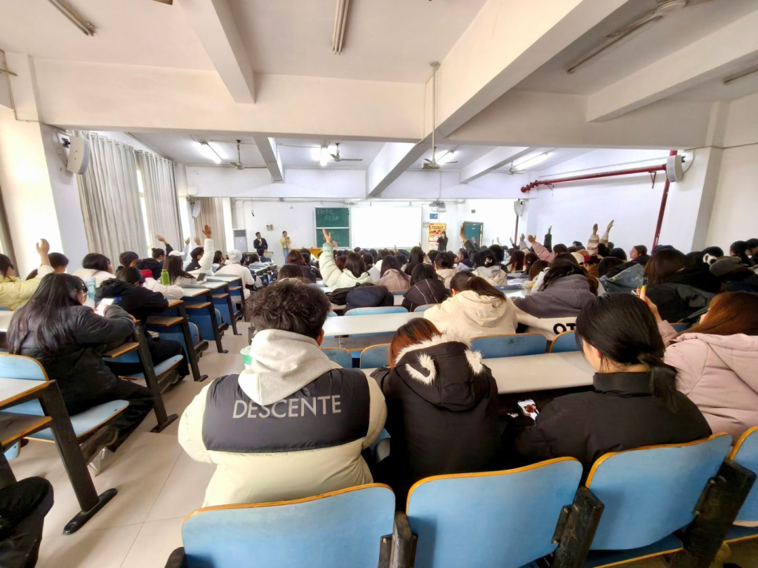校园网讯 为加强老员工求职风险防范意识,提升毕业生在求职、考研、考公过程中的风险应对能力,12月9日下午,beats365在15208教室举办“护航就业平安路”主题活动。活动特邀湘财证券股份有限公司岳阳分公司投教专员喻靖捷老师主讲,2026届毕业生代表约200人参加活动,公司学工办主任刘子行老师出席。