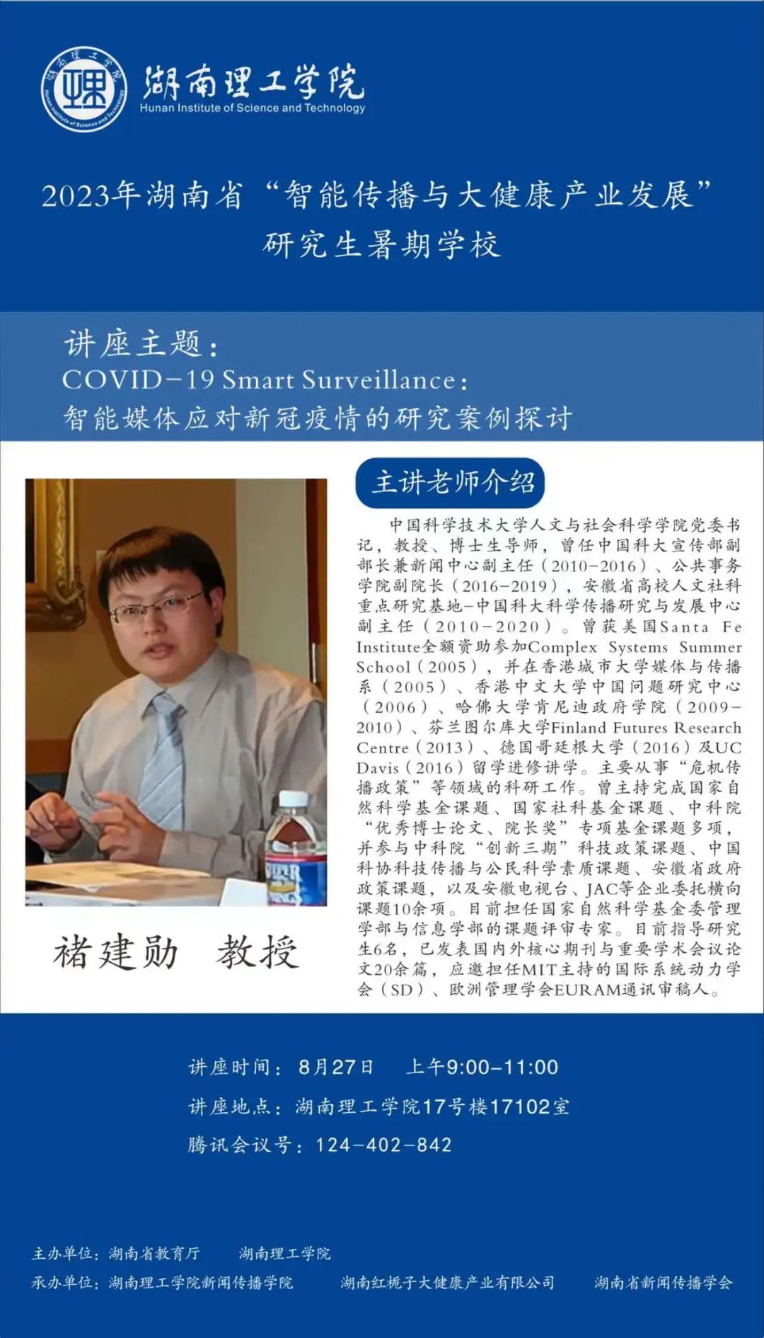 年湖南省“智能传播与大健康产业发展”研究生暑期公司邀请国内新闻传播学科知名专家学者、健康传播产业领域业界专家授课。来自beats365官方网站、中国传媒大学等全国各大高校的