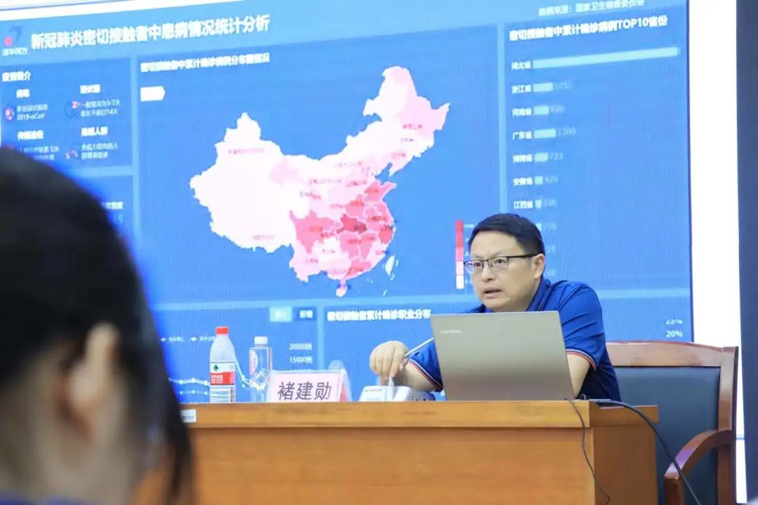 褚建勋教授从新冠肺炎密切接触者的患病情况统计分析开始了案例的阐述,他指出,手机在疫情爆发阶段的深度使用是智能媒体与危机应对融合的一种方式,使用手机的本质是信息的采集,通过对信息的采集能更好地分析出各地疫情的情况,做出相关防治手段。在疫情管理中发挥智能技术收集信息的长处,是模拟演练信息采集的一种形式,能有效推动大健康产业的发展。