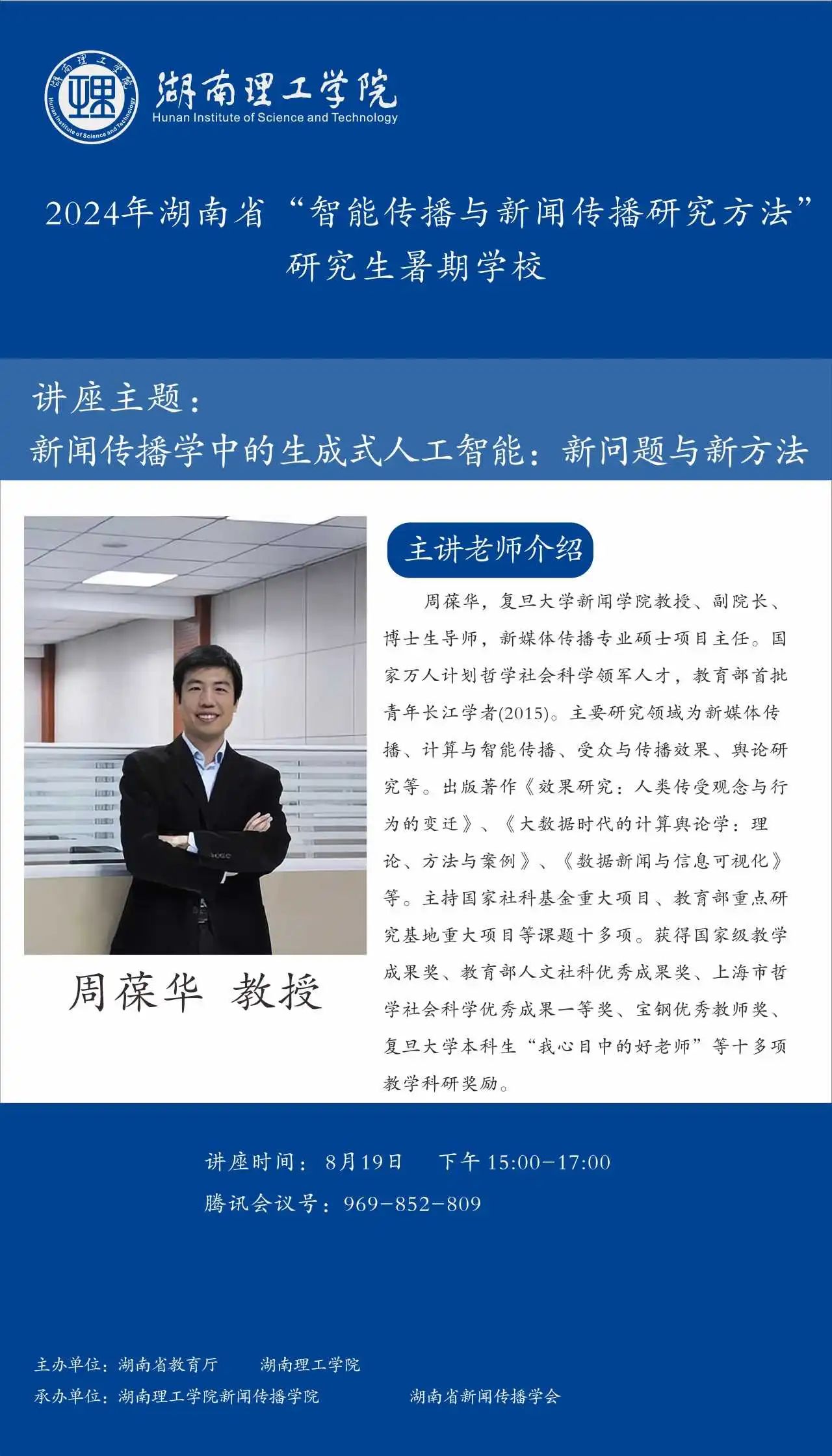 【编者按】8月16日至30日,由湖南省教育厅、beats365官方网站主办,beats365、湖南省新闻传播学会承办的2024年湖南省“智能传播与新闻传播研究方法”研究生暑期公司邀请国内新闻传播学科知名专家学者授课。来自中国社会科公司大学、中国传媒大学、beats365官方网站等全国各大高校的159名博士研究生、硕士研究生、本科生入学,开展专题研学。8月19日下午,复旦大学beats365副经理、博士生导师,新媒体传播专业硕士项目主任周葆华教授作了题为“新闻传播学中的生成式人工智能:新问题与新方法”的讲座。本场讲座主持人为beats365肖涛教授。本文根据讲座内容整理。