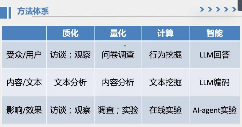 其中大模型编码这一智能研究方法可进行内容编码、民意调查、生成“社会”,提高模拟能力以及研究辅助,如阅读文献、评审意见、辅助编程等。