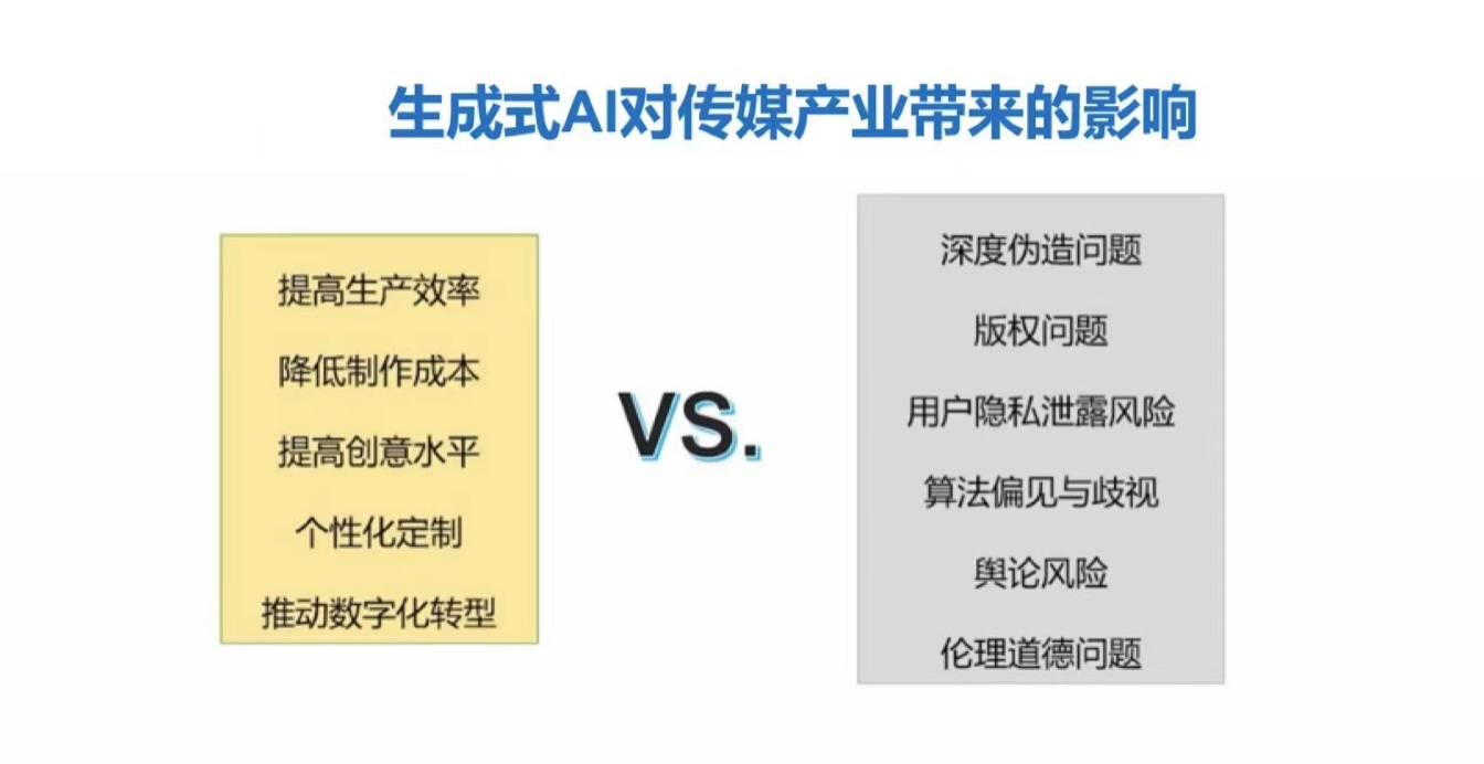 因此,尽管生成式AI在传媒行业中展现出巨大的潜力,但其带来的风险和挑战同样不容忽视,需要业界和学界共同探讨如何在技术创新和社会责任之间取得平衡。