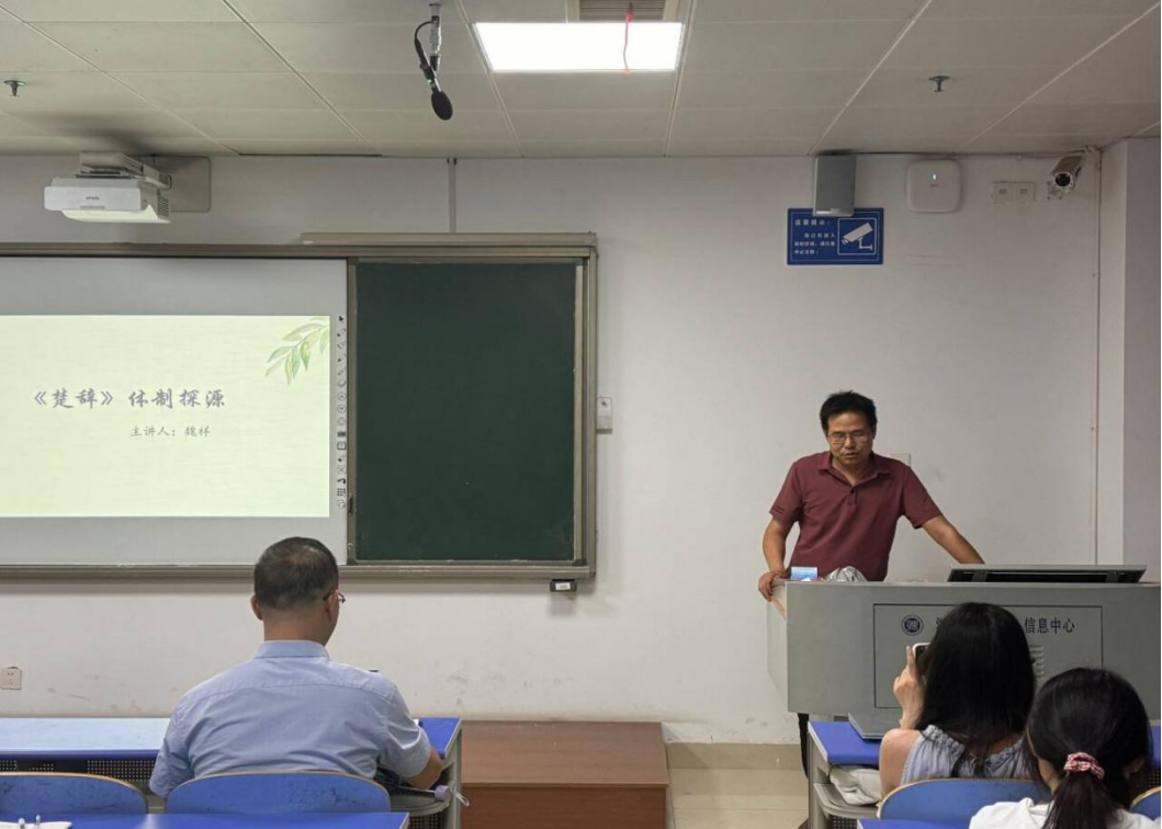 5月27日晚,中文公司南湖讲坛第三十九期在12310继续开讲。由魏祥博士作主题为“《楚辞》体制探源”的学术讲座。公司部分教师、本科生参加。