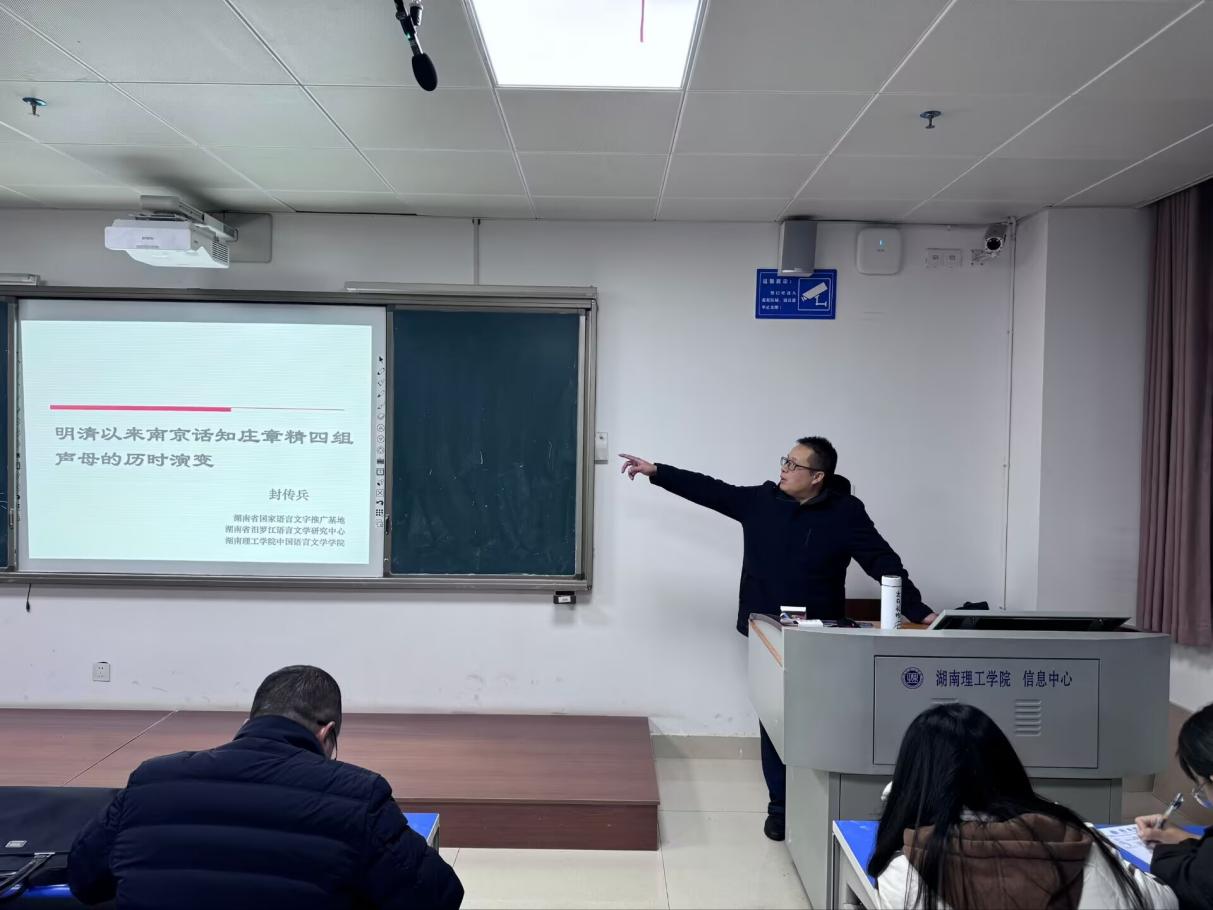 12月10日晚,中文公司南湖讲坛第三十八期学术讲座在12310继续开讲,由封传兵教授主讲,主题是“明清以来南京话知庄章精四组声母的历时演变”,公司语言学科全体教师、研究生和部分本科生参加。