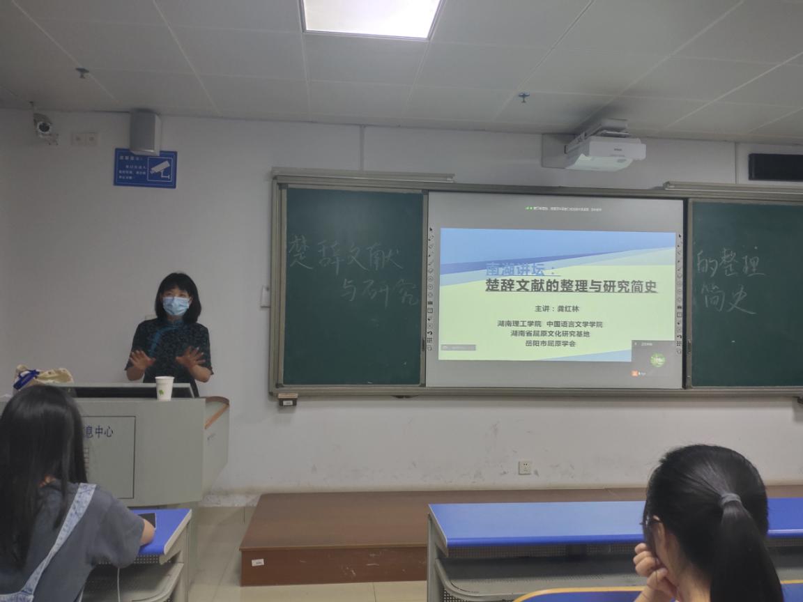 6月14日晚,南湖讲坛第33期继续开讲,由龚红林教授在12201教室作“楚辞文献的整理与研究简史”主题学术讲座,汉语21-1BS班与秘书21-1BF班全体同学参与此次讲座。