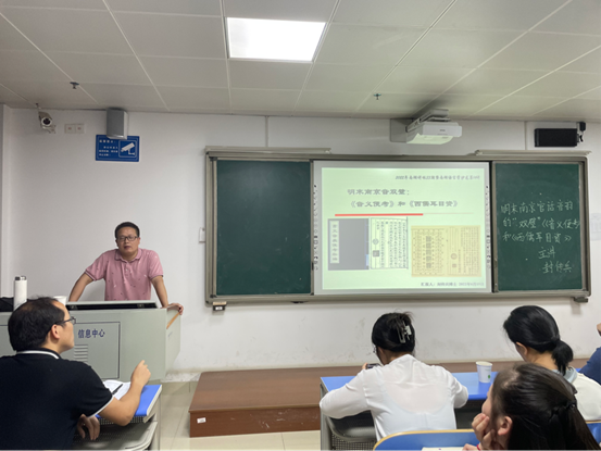 6月15日晚,中国语言文学公司南湖讲坛第33期在12201继续开讲。由封传兵教授作“明末南京官话音韵的双璧∶《音义便考》和《西儒耳目资》”主题学术讲座,语言学教研室肖峰、米嘉瑗、段勇义、朱福妹、唐磊、蔡旺、孙芳莎等老师到场交流,汉语21-2BS班、汉语21-3BS班全体同学参加了此次讲座。