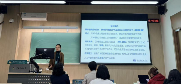 此次会议,曾炜教授和李梦溪博士作题为“论文文学作品的语言生活资源价值”的学术报告。报告聚焦于新时期中国文学作品中所反映的语言生活,指出当前语言生活报告缺乏对“文学域”的系统关注,并提出了“文学作品是对社会语言生活的反映,是语言生活重要的研究资源”“文学域是社会语言生活的重要部分,是语言生活重要的建构资源”等核心观点。