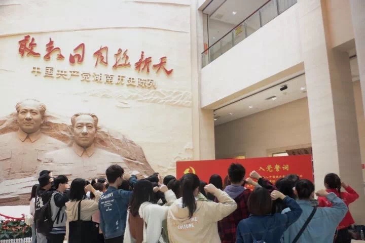 湖南党史陈列馆通过文字、图表、照片、油画、地图、历史信件、书籍、物品、场景模拟、3D投影等各种形式和手段,清晰的记录了中共湖南地方组织的发展历程、重点展示了湖南党史军史人物的光辉业绩、展现了党在湖南领导人民进行革命、建设和改革所取得的辉煌成就和宝贵经验,让党员对党的艰辛历程有了更加深刻的了解,对革命前辈坚定的理想信,不畏艰险,英勇斗争的精神,对建党以来所取得的成绩,感到由衷的崇敬。在湖南党史陈列馆大厅,前往参观的师生党员面对鲜红的党旗,重温了入党誓词,在铿锵的誓言中再次感受到共产党人的责任和使命。