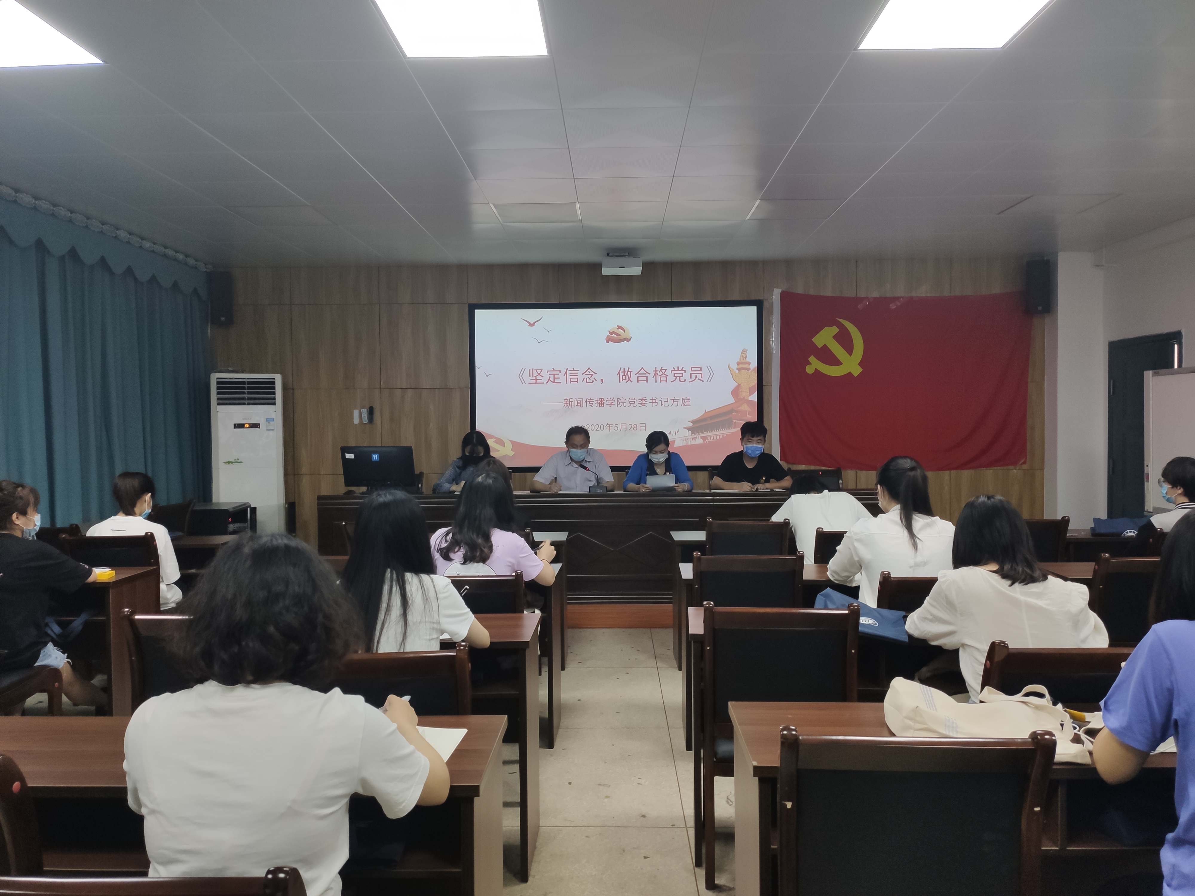 方庭以《坚定信念,做合格党员》为题为毕业生党员上了一堂离校前的党课。他说这堂课既是给毕业生离校前的党课,也是以一个老师、朋友或长者的身份和毕业生谈心,目的是为了让毕业生顺利走向社会,走向成功,做一名合格的名副其实的共产党员。他为毕业生党员解读了习近平总书记对青年的寄语,希望毕业生党员牢记自己在党旗下的铿锵誓言,按照习近平总书记提出的合格党员标准,做到“讲政治,有信念,讲规矩,有纪律,讲道德,有品行,讲奉献,有作为”,让梦想起航,让青春在奋斗中闪光。