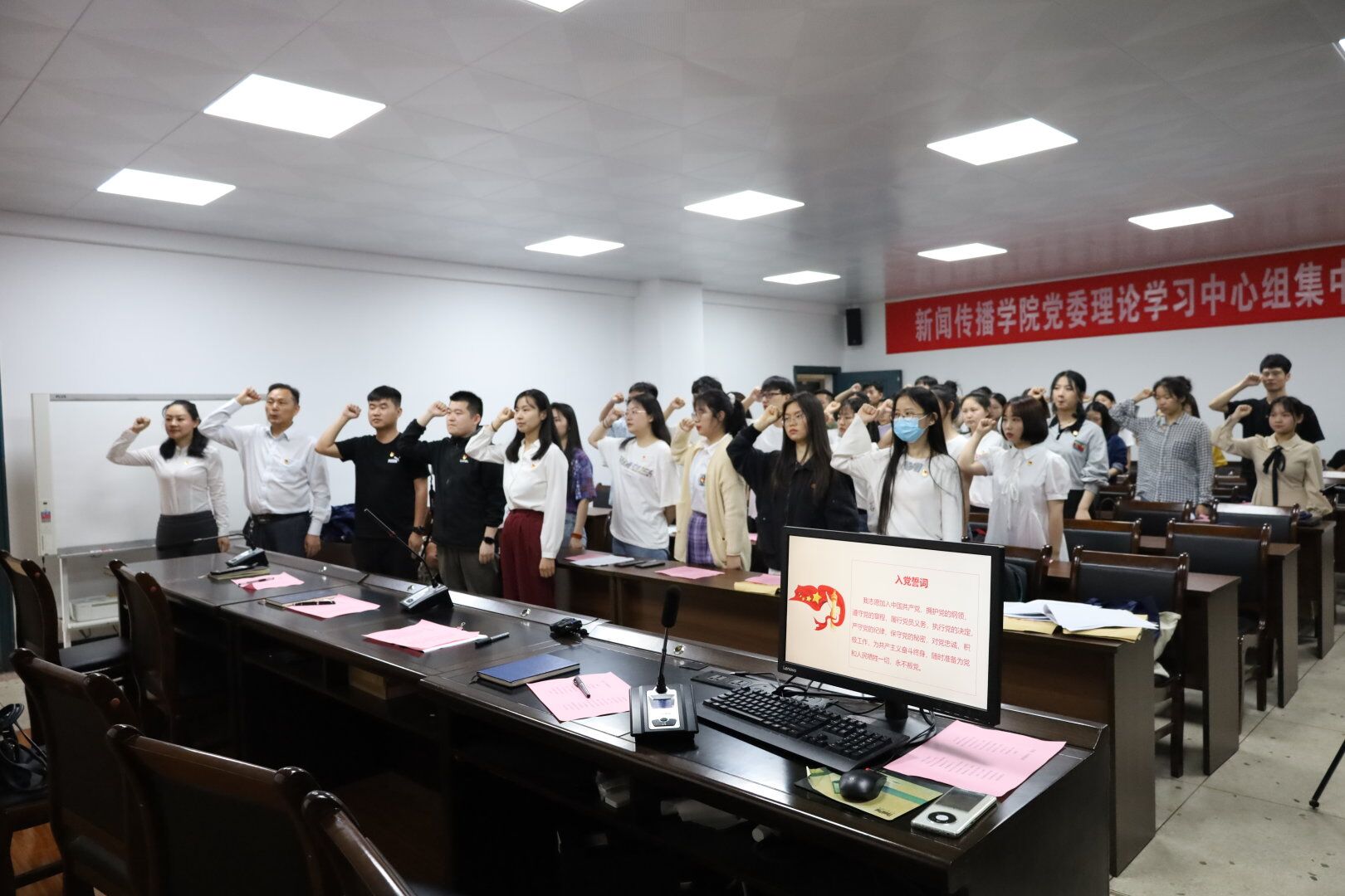 活动伊始,全体起立高唱国歌,全体师生重温入党誓词。方庭以“坚定理想信念,誓做合格党员”为题,为2021届毕业生党员讲授党课。他强调,一名合格的党员要做到“讲政治,有信念”“讲规矩,有纪律”“讲道德,有品行”“讲奉献,有作为”,希望同志们毕业后不忘初心,接续奋斗,再创佳绩。