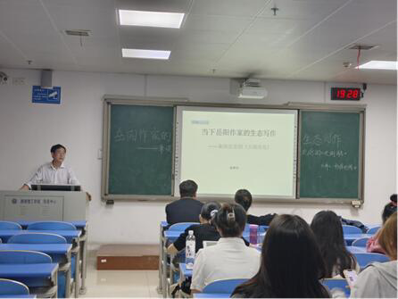 5月25日晚,教师第一党支部成员、公司党委书记杨厚均教授在12201上了一堂题为“当下岳阳作家的生态写作”的文学党课,教师第一党支部全体成员和部分本科生党员参加。杨厚均从生态写作的定义入手,说明生态写作是当下现代社会发展的产物,以岳阳作家的生态写作为例,阐释了岳阳的生态文学创作具有深厚的历史底蕴和独有的现实机缘,以及对今天的生态文学创作的启示。文学党课期间,全体与会党员观看了为纪念习近平总书记在岳阳提出“守护好一江碧水”殷切嘱托5周年而制作的“守护好一江碧水”专题纪录片,感受与思考岳阳生态建设取得的成果。观看结束后,党员同志分享了观后感。