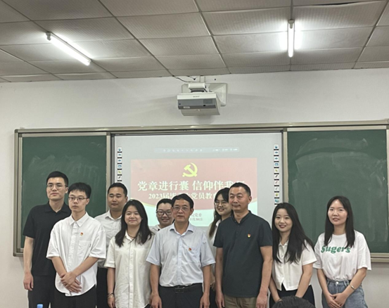 党委副书记贺波彬为2023年上半年新发展党员发放了党徽。在2023届毕业生党员代表邢嘉琪同学的领誓下,举行了新党员入党宣誓仪式暨重温入党誓词仪式。