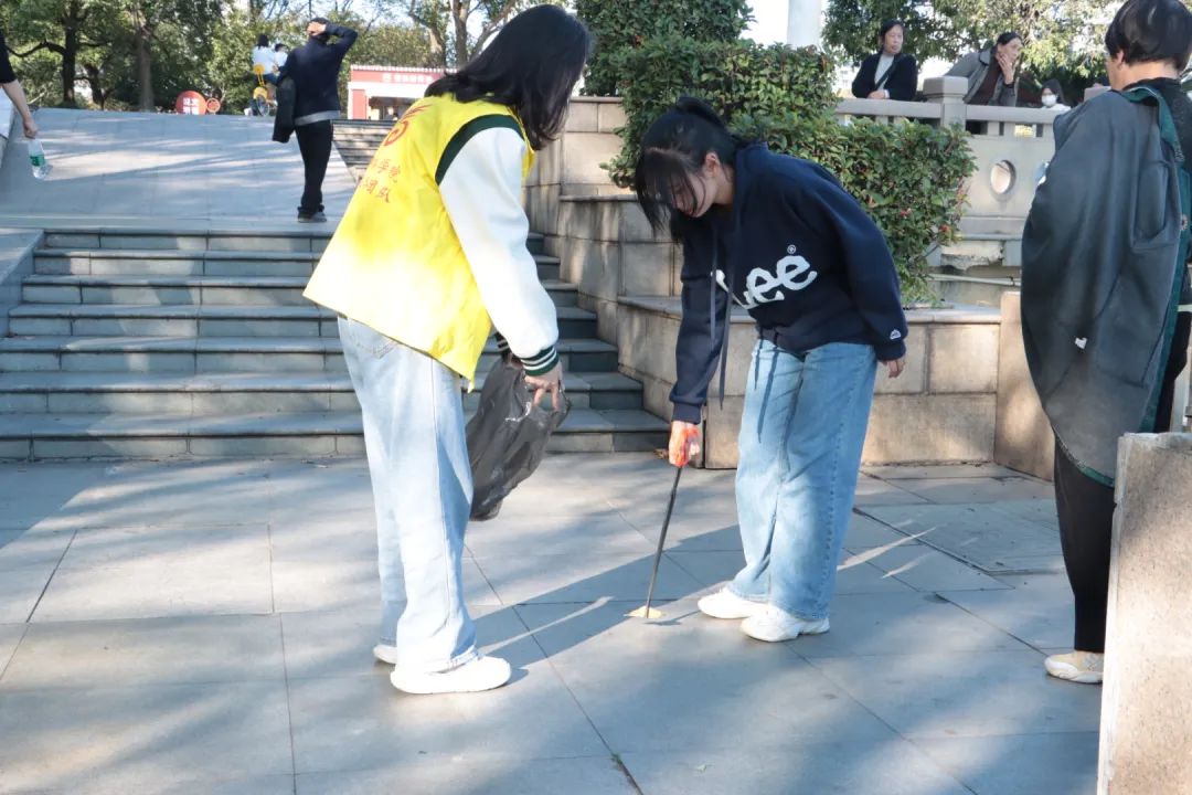 在团学负责人组织下,全体成员两两分组,带着各式工具,井然有序地打扫广场,圆满完成了此次课外实践。