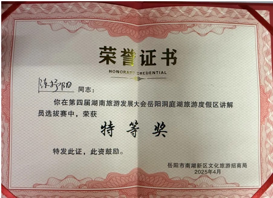 “比赛不仅是对专业能力的锻炼,更是一场地方文化的深度‘对话’。”陈抒阳说,她将以此次荣誉为新起点,积极在省旅发大会中当好志愿讲解员,为青春代言,也为岳阳文旅发展注入高校智慧与青年力量。