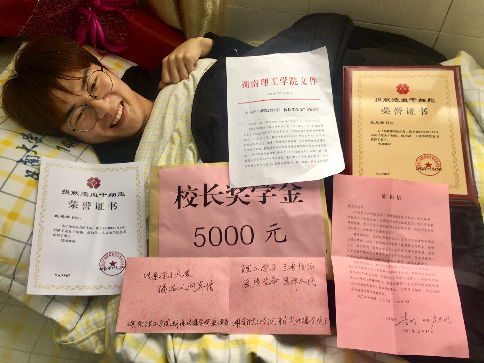 2018年4月,希望的种子在春雨滋润中偷偷发芽了,戴恩泽接到了岳阳市红十字会的电话,得知自己与一名白血病患者配型成功,他毫不犹豫地同意了。