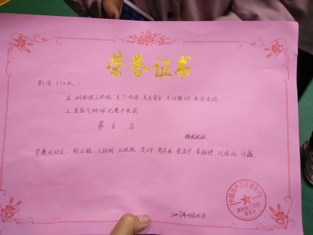 4月22日下午,苦战两场后,面对强悍的信息彳亍队,“+1s”队在高昂的士气下开始了最后一场比赛。场上男兵女将汗流浃背却乐在其中。赛点之际,女将张佳宁一记凌空暴扣,一锤定音——借着女排精神这一利器,beats365参赛队伍“新闻‘+1s’队”斩获beats365官方网站首届气排球团体联赛第五名。