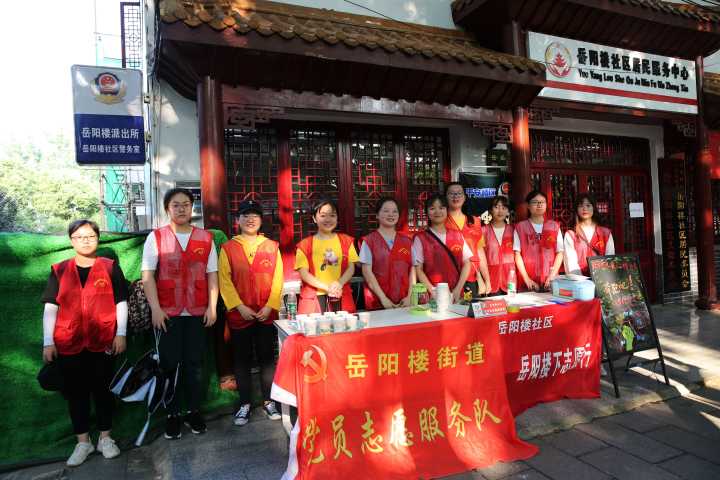 “能不能给我一杯茶?”“你好,麻烦问一下这附近哪家鱼馆好吃啊?”“岳阳楼买票的地方怎么走啊?”“岳阳楼是哪个朝代建成的?”面对游客各种各样的问题,志愿者团队在汴河街设立两个志愿服务点,为广大游客提供各项便民服务,如旅游咨询、免费茶水、应急药品、忧乐精神讲解等,并向游客提供景区地图等资料供游览参考,让出行的游客感受到岳阳人民的热情好客与这座城市深厚的历史文化底蕴。