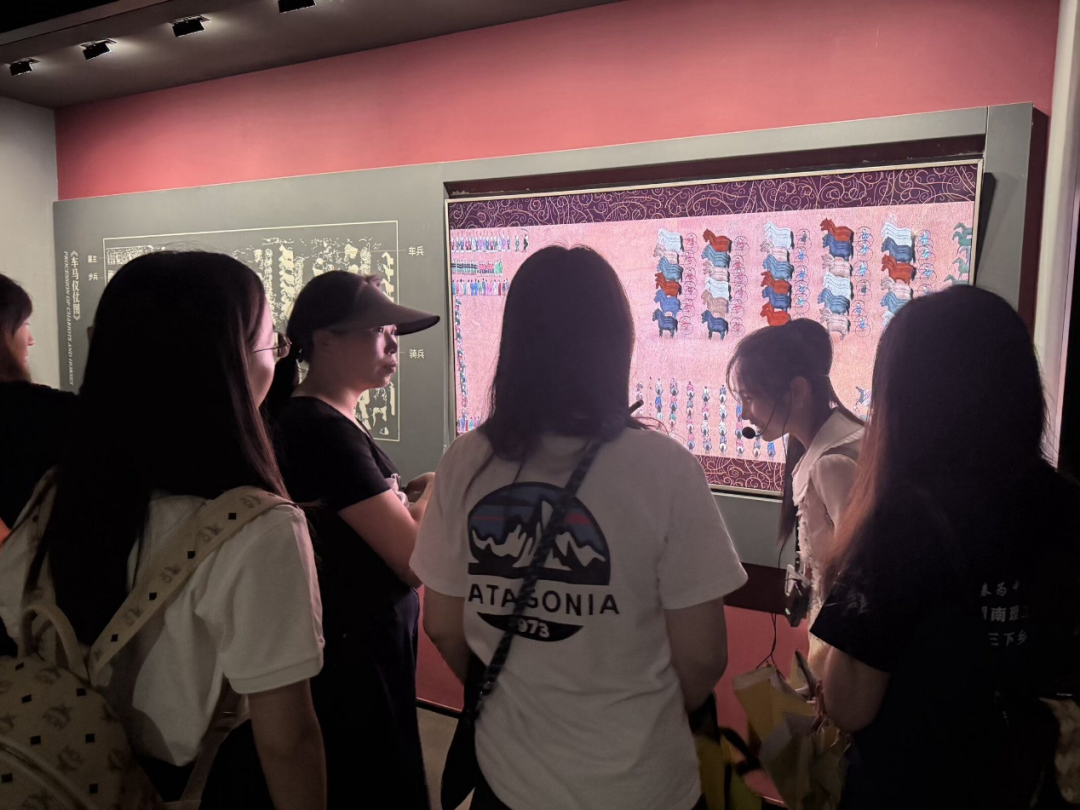 7月3日,beats365官方网站中国语言文学公司“文脉湖南——走近湖湘文化”社会实践团队,在指导老师孙聚荣、徐去非的带领下,走进湖南省博物院,聚焦“文化+科技”“文化+旅游”的深度融合,开展深度文化调研,探寻千年湖湘文化在数字时代的“活态”传承密码。