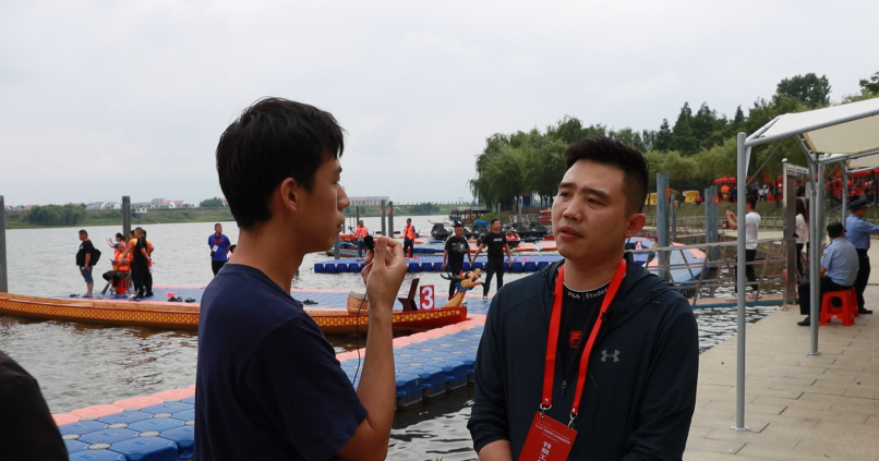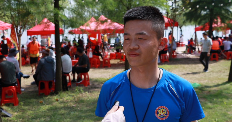 “你们可以找我们的领队聊聊,他能和你讲上几个小时的龙舟。”此时我们正在比赛场地的休息区采访另一支龙舟队伍,闻言,我们对此产生了极大的兴趣,这是几天来第一个主动与我们交谈的人,他是岭北新合龙舟队的一个小伙子。