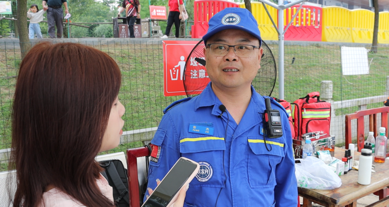 “昨天有两个船追尾然后翻船了,运动员全都落水,我们从龙舟的队员落水起,大概只用了20多秒,救援艇就全部赶到并展开了救援。”负责本次“龙超”安全工作的蓝天救援队副队长彭杰回忆道,“为了能更好地为本次比赛顺利举行保驾护航,我们进行了多次水上针对性的训练,所以说来之能战,战之能胜。”救援队队员们还谈笑着说,当时有一个运动员都没反应过来,就被救上来了。