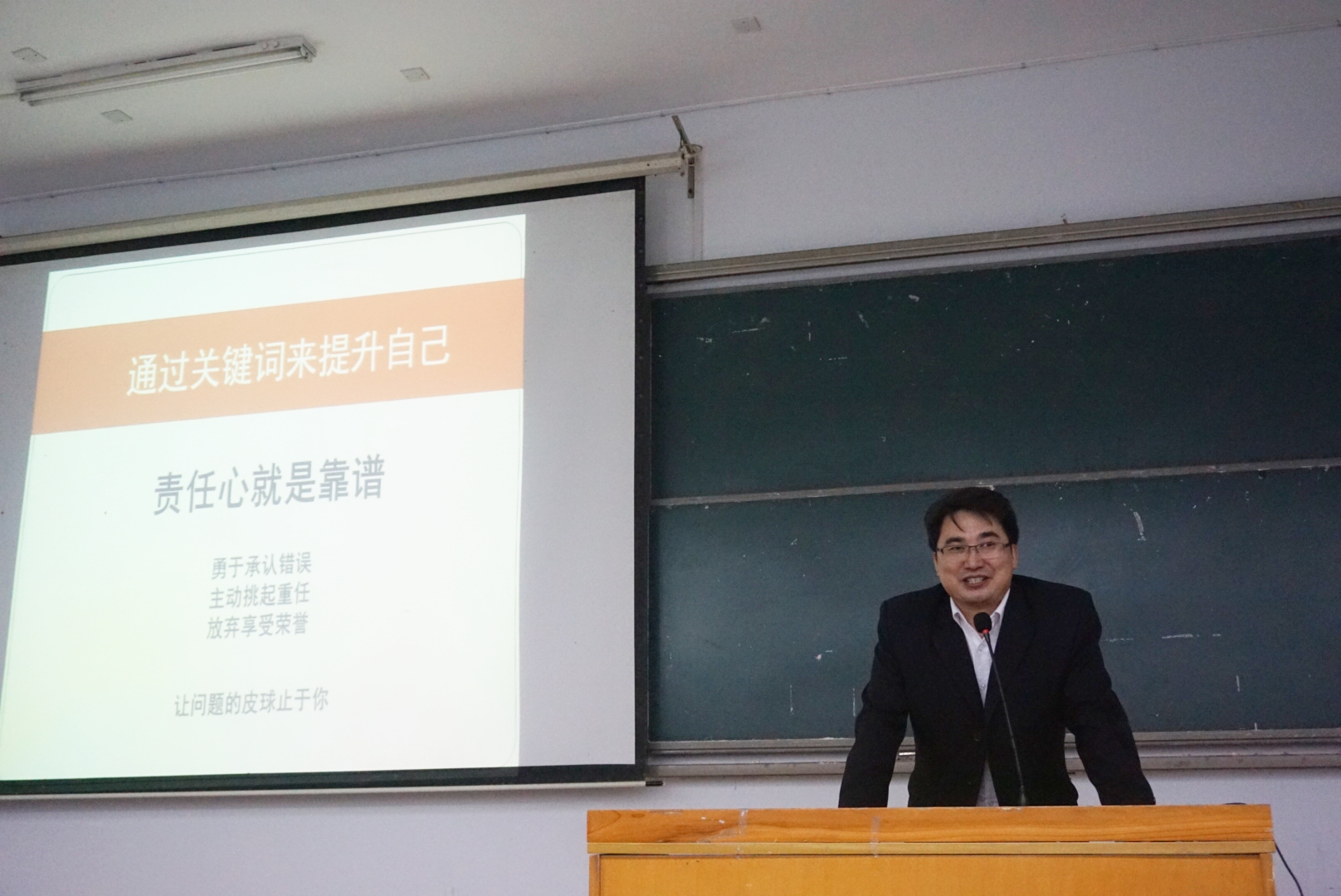 杨寿志从自身经历出发,从五个方面展开讲述。一是选择大于努力。在正确的时间做正确的事,往往可以达到事半功倍的效果。二是忠诚度大于能力。忠诚于身边的每一个人,每一件事,会让人有意想不到的收获。三是关系才是敲门砖。虽然关系有强弱之分,但无论是强关系还是弱关系,恰当使用就对成功有益。四是责任心就是靠谱。勇于承认错误和敢于挑起重担的人更易被人赏识。五是自动自发。做事要主动,唯有那些自觉将“要我做”转换成“我要做”的人,才会快人一步取得成功。他将“整、借、学、变”4个字送给在场同学。他说:要是一个人既会整合资源,借力借势,又懂得如何保持积极的学习心态和适时改变自己陈旧的观念,那么他离成功就不远了。