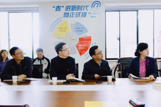 石军、王文锋等参观了麦芒公司的工作平台,了解公司运营情况。他们简要介绍了公司的专业设置、人才培育特色等情况,表示公司着力培养适应新媒体时代的融媒内容生产、数字广告创意人才,更好满足行业需求、服务社会发展。