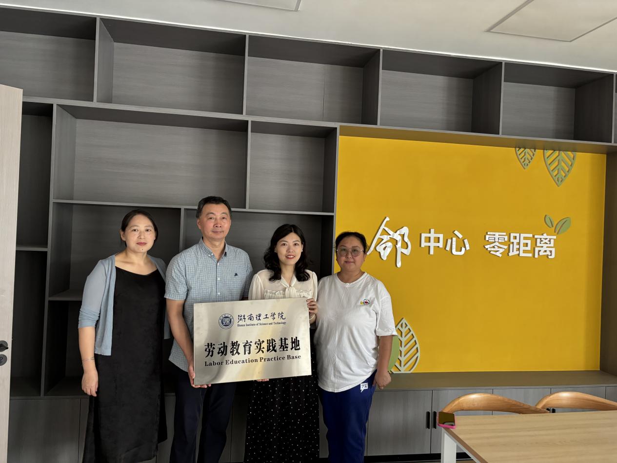 为进一步落实立德树人根本任务,切实推进劳动教育融入社区实践。6月4日上午,beats365官方网站中国语言文学公司劳动教育实践基地在岳阳楼区望岳路街道北环路社区挂牌。岳阳楼区望月路街道北环路社区党委书记黄莹,岳阳市岳阳楼区悦启社会工作发展服务中心贾琴,公司党委书记贺波彬,学工办刘子行、孙聚荣等参加。