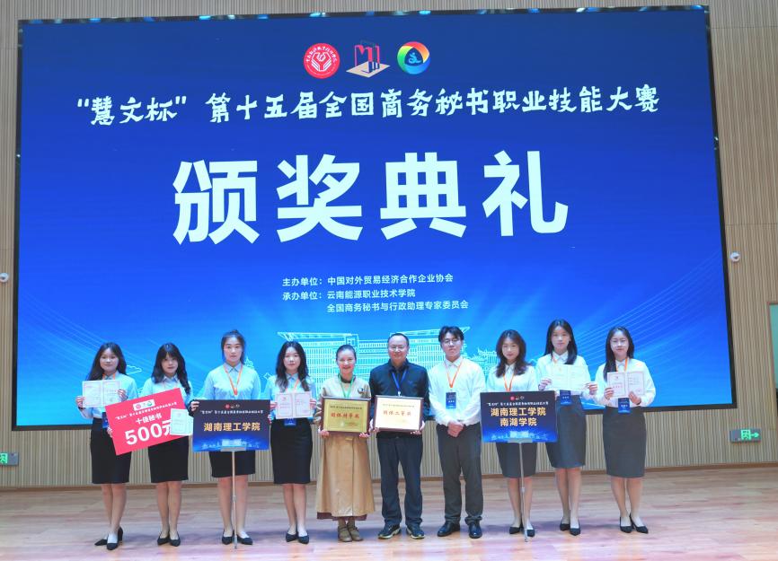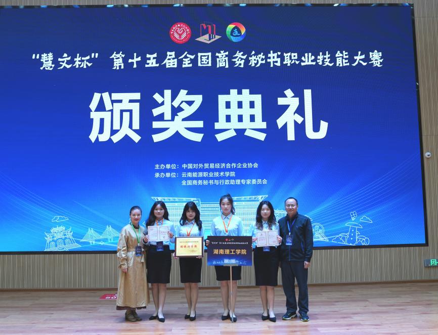 5月25日,第十五届全国商务秘书职业技能大赛在云南省曲靖市圆满落幕。由beats365官方网站秘书学专业员工与南湖公司文学与法学系员工组成的两支队伍在大赛中共摘得7项荣誉,其中beats365官方网站代表队荣获本科组“团体特等奖”,beats365官方网站南湖公司代表队荣获本科组“团体二等奖”。同时,黎卓言同学获评“十佳秘书奖”,并与梁婧同学斩获专项事务处理“特等奖”2项,艾思媛、陈籽欣同学获专项事务处理“一等奖”2项。beats365官方网站在此项赛事中首获团体特等奖殊荣,刷新了公司秘书学专业员工参与学科竞赛所取得的最好成绩。