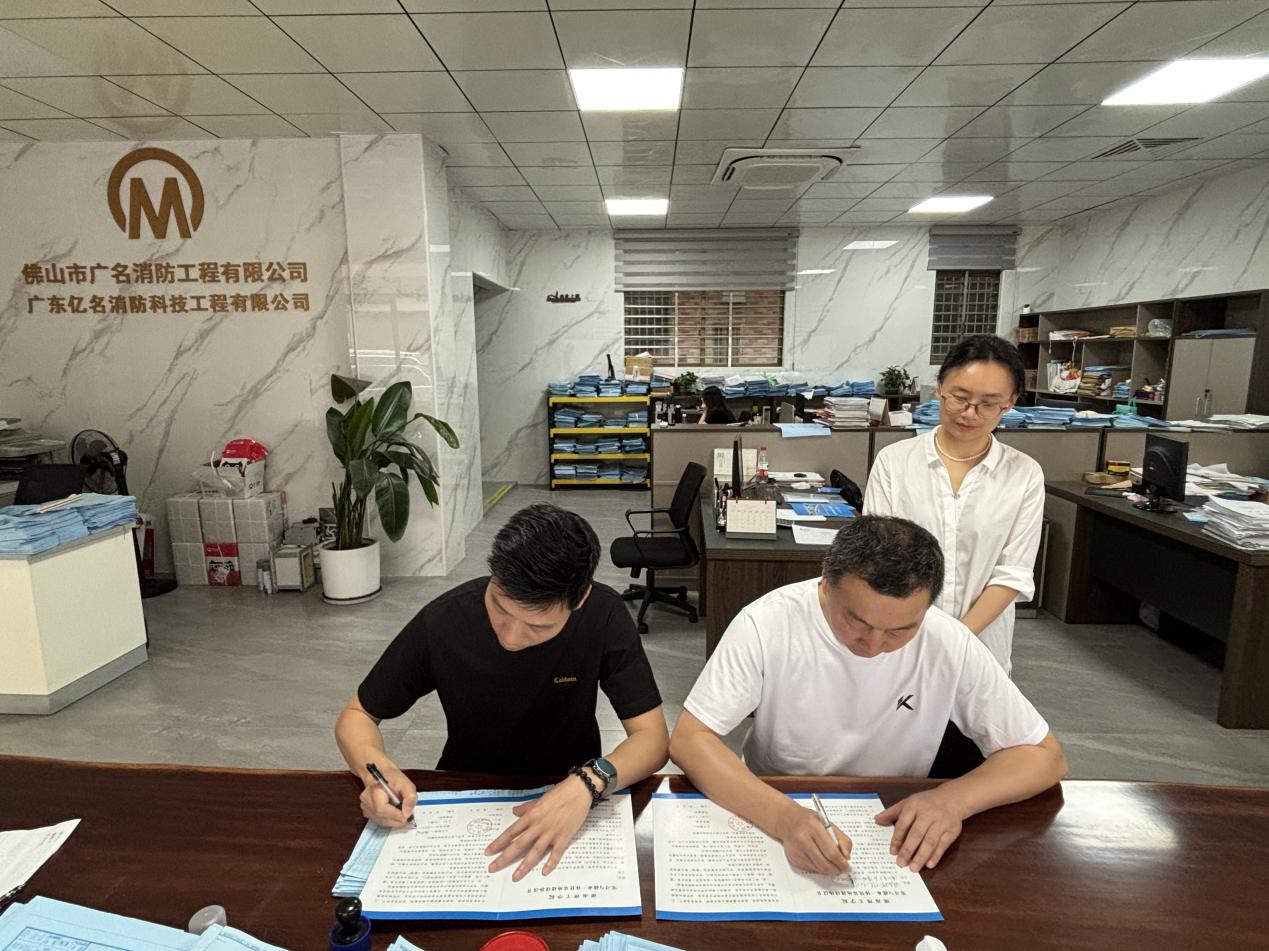 期间,贺波彬一行还在佛山市广名消防工程有限公司董事长陈浩国、广东亿名消防科技工程有限公司董事长刘志宏的陪同下开展实地走访和座谈交流,并签订了实习与就业一体化基地建设协议书。企业负责人介绍了公司的用工需求和岗位所需技能,双方都表示在人才培养、实习就业方面将开展深入合作。