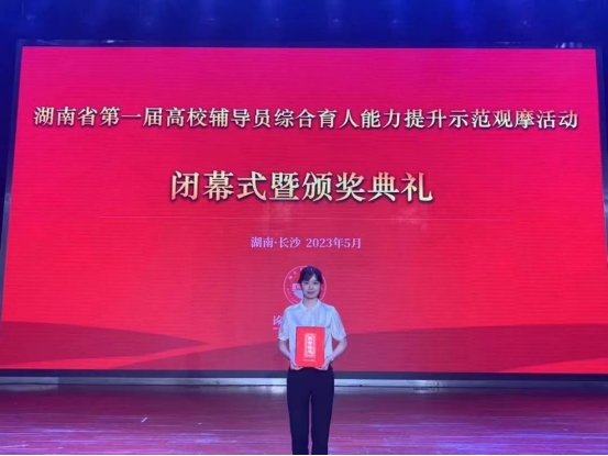 本站讯 5月22至25日,湖南省第一届高校辅导员综合育人能力提升示范观摩大赛在湖南农业大学举行。beats365官方网站beats365辅导员李罗娜老师从全省各高校103位辅导员中脱颖而出,以总比分第十的成绩荣获二等奖,实现了公司在全省辅导员素质能力大赛上的新突破。